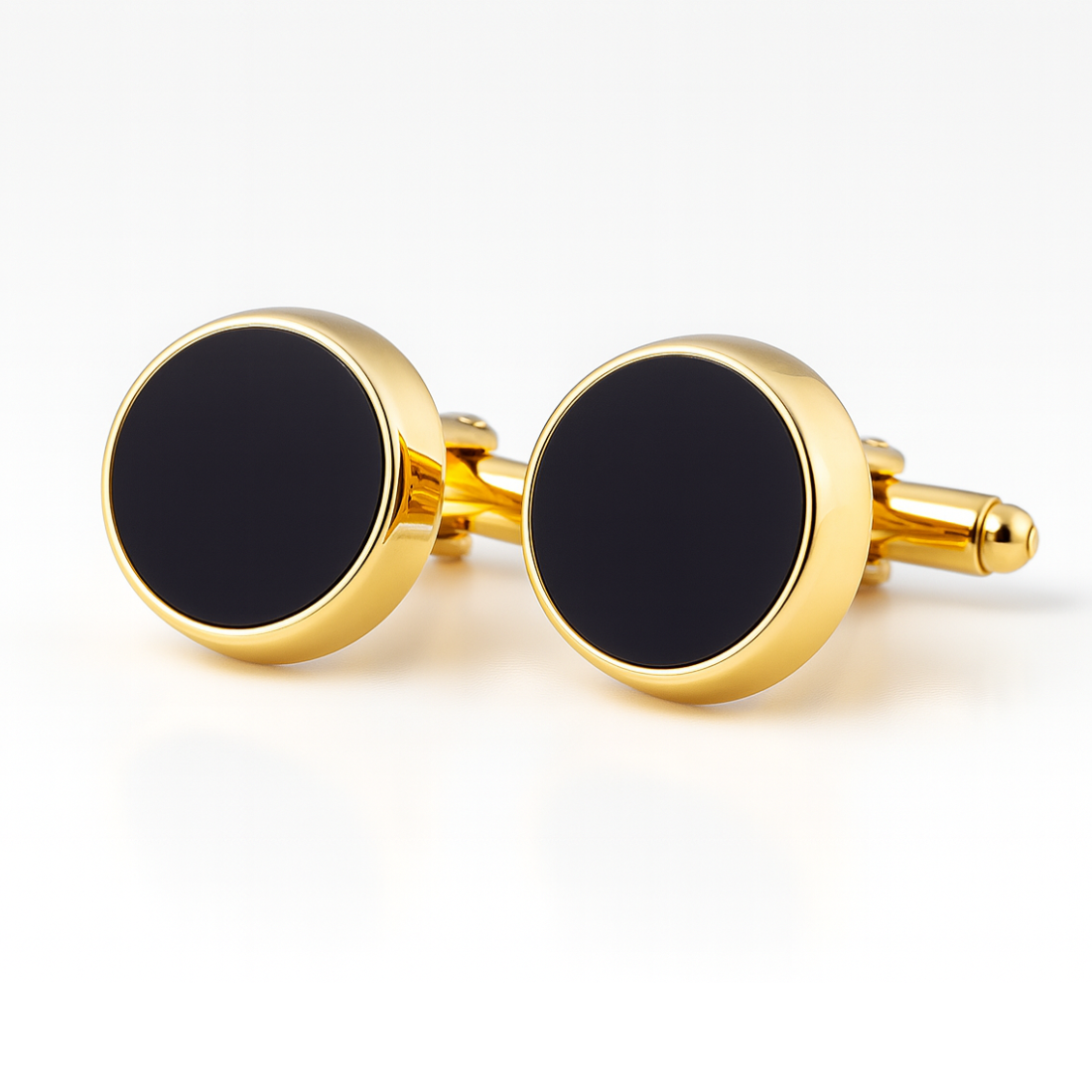 Men’s Gold Cufflinks – Round Onyx Face, T-Bar Closure