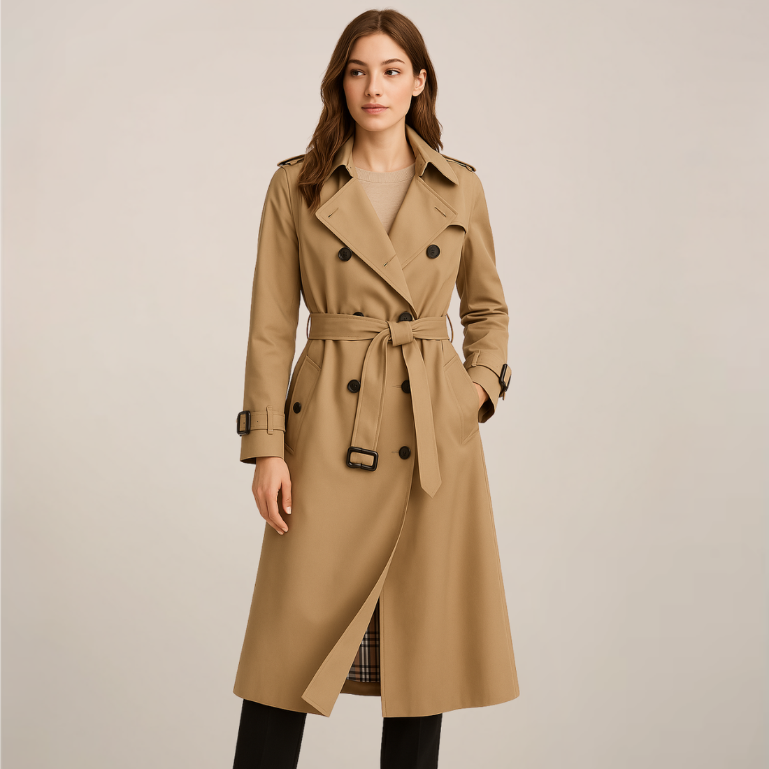 Women’s Classic Belted Trench Coat – Timeless Double-Breasted Design