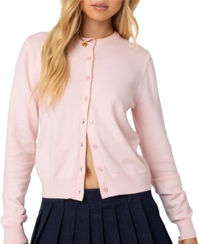 Women’s Cropped Knit Cardigan – Powder Pink Soft Feminine Layer