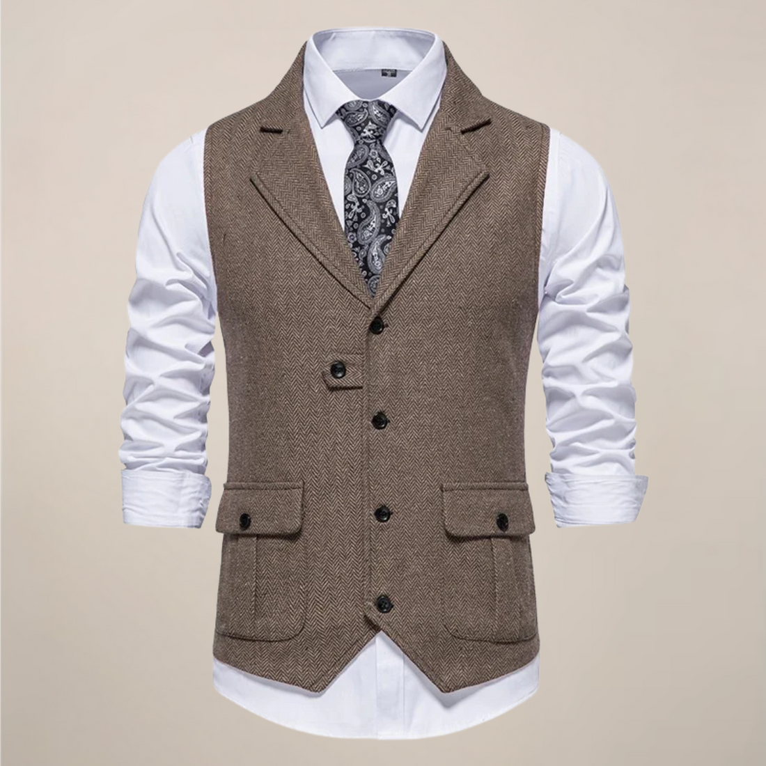 Men’s Heritage Waistcoat – Herringbone, Tailored, Lapel Front