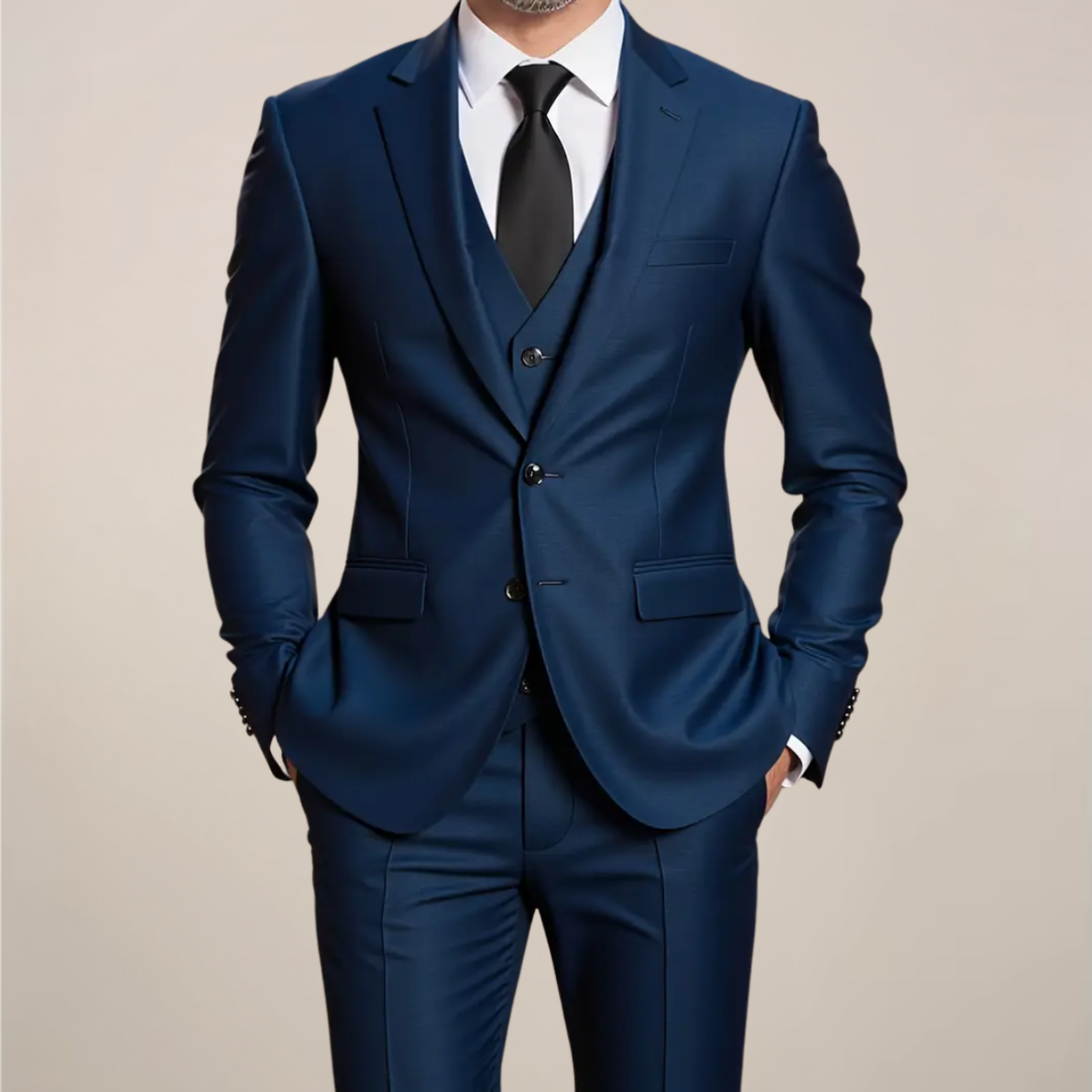 Men’s Slim Fit Three-Piece Suit – Tailored Navy Ensemble for Weddings & Formal Occasions