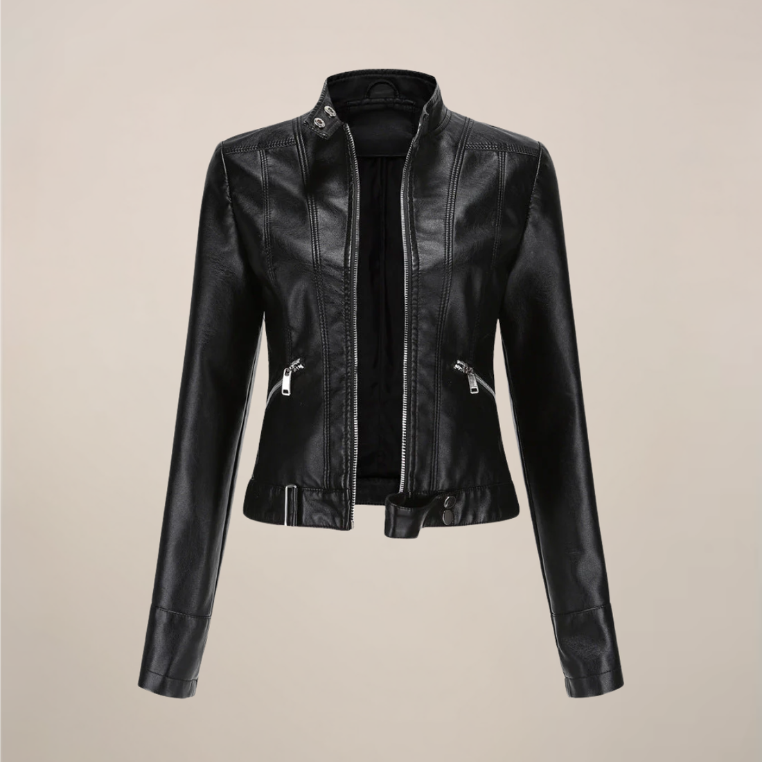Women’s Faux Leather Biker Jacket – Tailored Short Zip-Up Design