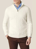 Men’s Cable Knit Half Zip Jumper – Stand Collar, Rib Trim