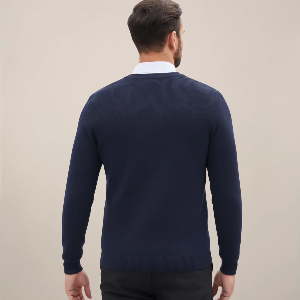 A timeless wardrobe essential, this V-neck sweater combines understated sophistication with versatile styling. The slim yet comfortable fit makes it ideal for layering over a crisp shirt or wearing on its own, offering both polish and warmth through cooler months. Designed to transition seamlessly from office to evening, it ensures effortless refinement.