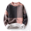 Men’s Colour-Block Knitted Jumper – Crew Neck, Long Sleeve - Geometric Design
