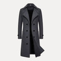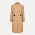 Refined and commanding, this trench-style overcoat delivers a perfect balance of structure and sophistication. The double-breasted front with wide peak lapels evokes timeless British tailoring, while the fitted silhouette offers a confident, modern edge. Designed for warmth and presence through formal evenings, workdays, or winter gatherings.
