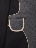 Design: Vintage-inspired tweed blazer with notched lapels and multiple flap pockets