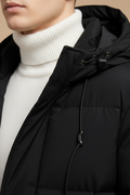 Designed for days when warmth and presence matter equally, this longline parka delivers a strong, structured silhouette with dependable coverage. The padded construction and protective hood create a confident outer layer, while the clean lines keep the look sharp rather than bulky. Ideal for winter commutes, city wear, and cold-weather travel when style should feel controlled and purposeful.