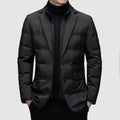 Blending the polish of a jacket with the comfort of insulated outerwear, this men’s padded jacket delivers style without compromise. The structured notch lapels and tailored cut create a refined silhouette, while the discreet padded design offers extra warmth. Functional pockets and a two-button closure complete the look, making it a versatile choice for both formal and casual settings.