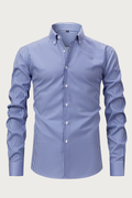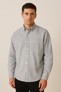 Design: Long sleeves with chest pocket, button-down collar, full stripe pattern