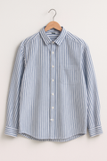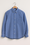A timeless essential with a contemporary edge, this long sleeve shirt features a relaxed fit, button-down collar, and chest pocket. The structured blue and white stripe pattern offers a crisp, smart look, while the smooth, lightweight feel ensures day-long comfort. Ideal for layering or wearing on its own, it moves easily from office to off-duty.