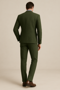 Step into understated elegance with this classic green three-piece tuxedo, defined by its sharp tailoring and traditional silhouette. Comprising a structured blazer, coordinating waistcoat, and matching trousers, the ensemble is designed for occasions that call for formality and distinction.