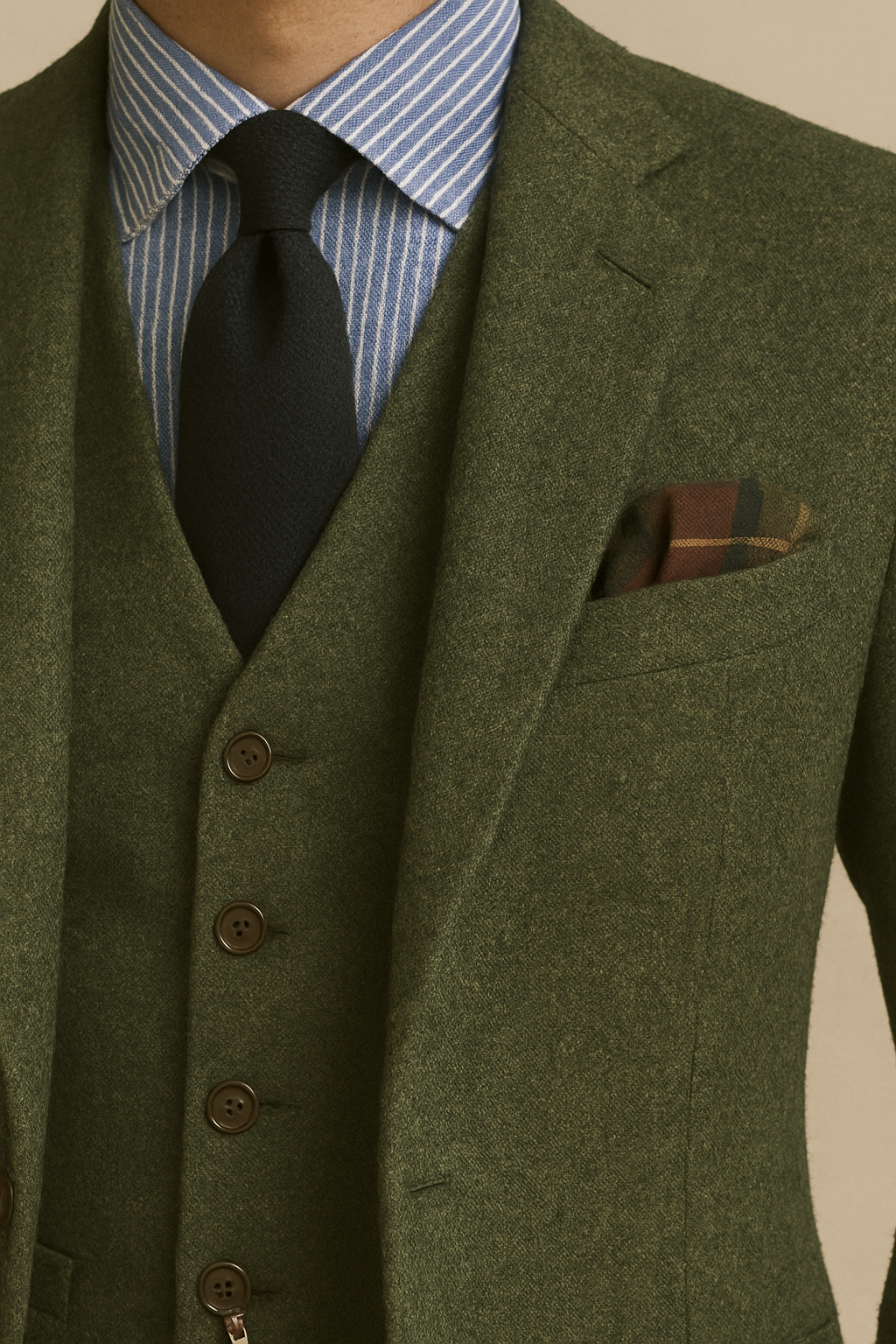 Men’s Tweed Green 3-Piece Tailored Suit – Classic Tuxedo