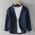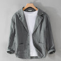 Men's Linen Blend Blazer - Single-Breasted Notch Lapel Two-Button Unstructured Casual Smart Style