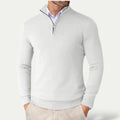 A modern staple with timeless appeal, this half-zip pullover is designed to transition effortlessly from office to off-duty. The clean zip neckline lets you switch between a sharp, polished look and a relaxed, casual style. Lightweight yet warm, it delivers breathable comfort while maintaining a refined silhouette. Ideal for layering over a shirt or wearing solo, it’s the perfect balance of versatility and sophistication.