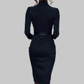 Tailored with precision and grace, this sheath midi dress defines effortless sophistication. The structured collar and cinched belt create a sleek, feminine silhouette, while the fitted cut enhances natural poise. Perfect for business meetings, elegant dinners, or evening gatherings, it exudes confidence and timeless refinement in every detail.