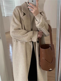 A refined long coat with a softly structured, oversized silhouette. Wide notch lapels and a clean three-button front create effortless polish, while dropped shoulders and roomy pockets add everyday ease. Wear belted or open over knits and tailoring for a modern, minimal look from desk to dinner.