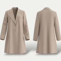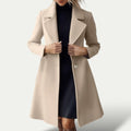 Women’s Beige Long Winter Overcoat – Elegant Lapel Wool-Style Coat