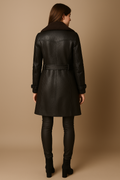Design: Double-breasted leather-look trench coat with shearling-style collar, waist belt, belted cuffs and side pockets