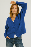 Ease meets elegance in this soft knit cardigan sweater, designed with a relaxed fit that drapes effortlessly over any outfit. The deep V-neckline and button-front closure add a timeless touch, making it the perfect layer for casual days or laid-back evenings. A versatile piece that brings both comfort and understated style to your everyday wardrobe.