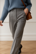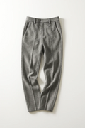 These tailored trousers combine understated refinement with modern wearability. The clean lines, tapered silhouette, and subtle pattern lend a quietly sophisticated edge to any wardrobe. Perfect for both business and casual settings, they create an effortlessly polished look that transitions seamlessly from day to evening.