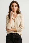 Women’s Cream Cardigan Sweater – Button Front, Soft Collar