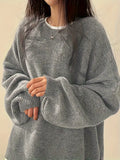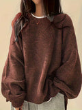 Women’s Lantern Sleeve Sweater – Oversized, Round Neck, Rib Trim