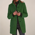 Quietly polished and endlessly versatile, this long coat brings clean lines and effortless warmth to autumn–winter dressing. The stand collar frames the neckline, while a three-button front and neat patch pockets keep the silhouette refined. Cut to a flattering mid-thigh length, it layers smoothly over knits and tailoring for work, weekends and smart evenings alike.