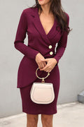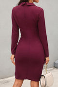 Women’s Long Sleeve Knee Dress – Elegant Office Wear – Structured Fit – All-Season
