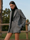 Women’s Luxury Tweed Blazer – Houndstooth Long Sleeve Classic Fit - Double-Breasted