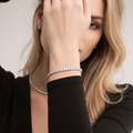 A timeless tennis bracelet that catches the light from every angle. Neatly set round-cut stones create a continuous line of sparkle, finished with a low-profile silhouette that layers effortlessly with a watch or bangles. Elegant enough for evenings yet refined for every day, it’s the piece that completes occasion looks and makes a beautiful gift.