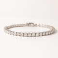 Design: Classic tennis bracelet with round-cut stones in neat prong settings and a secure box-style clasp