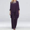 Women’s Three-Piece Wide-Leg Trousers & Longline Jacket Set – Formal Occasion Wear