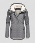 Design: Mid-length waterproof jacket with fleece lining and hood
